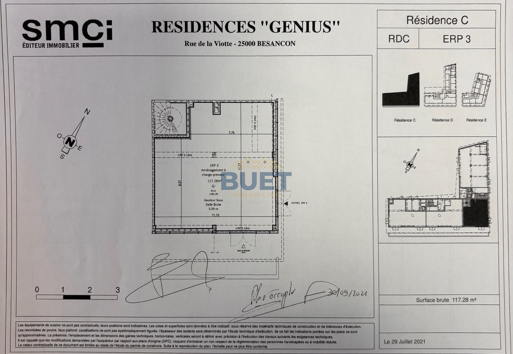 Impôt foncier à la charge du preneur. Locaux livrés finis hors courants faibles, non cloisonnés et 2 parkings en sous-sol inclus.