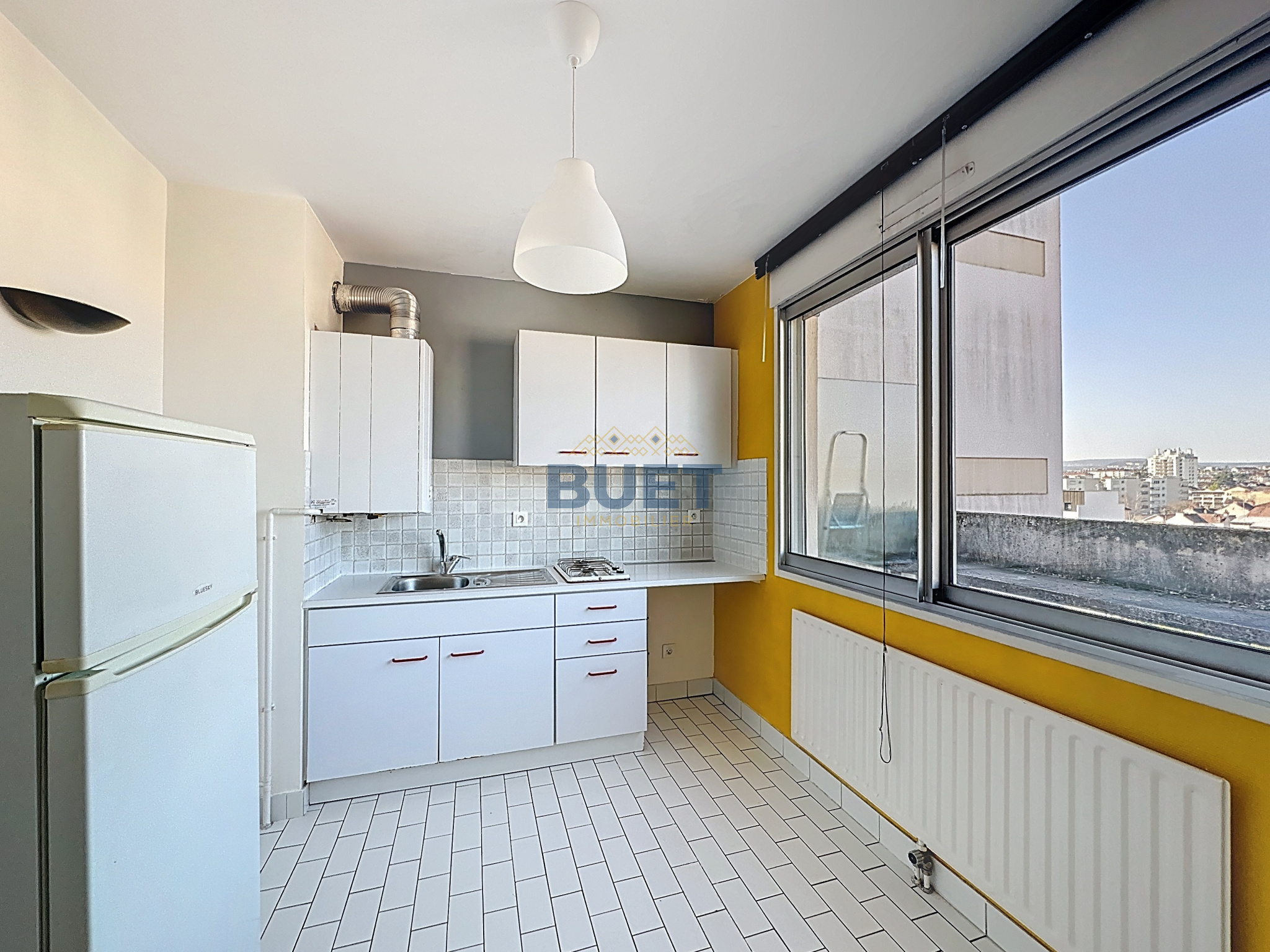 Au 5ème et dernier étage avec ascenseur d'une copropriété bien tenue, appartement de type T1bis disposé comme suit : une entrée avec placards, un séjour donnant sur une terrasse d'environ 10m² avec vue dégagée exposée OUEST, un dégagement desservant une cuisine dinatoire aménagée et équipée et une salle de bains avec WC. Chaudière neuve : remplacée en juillet 2025.