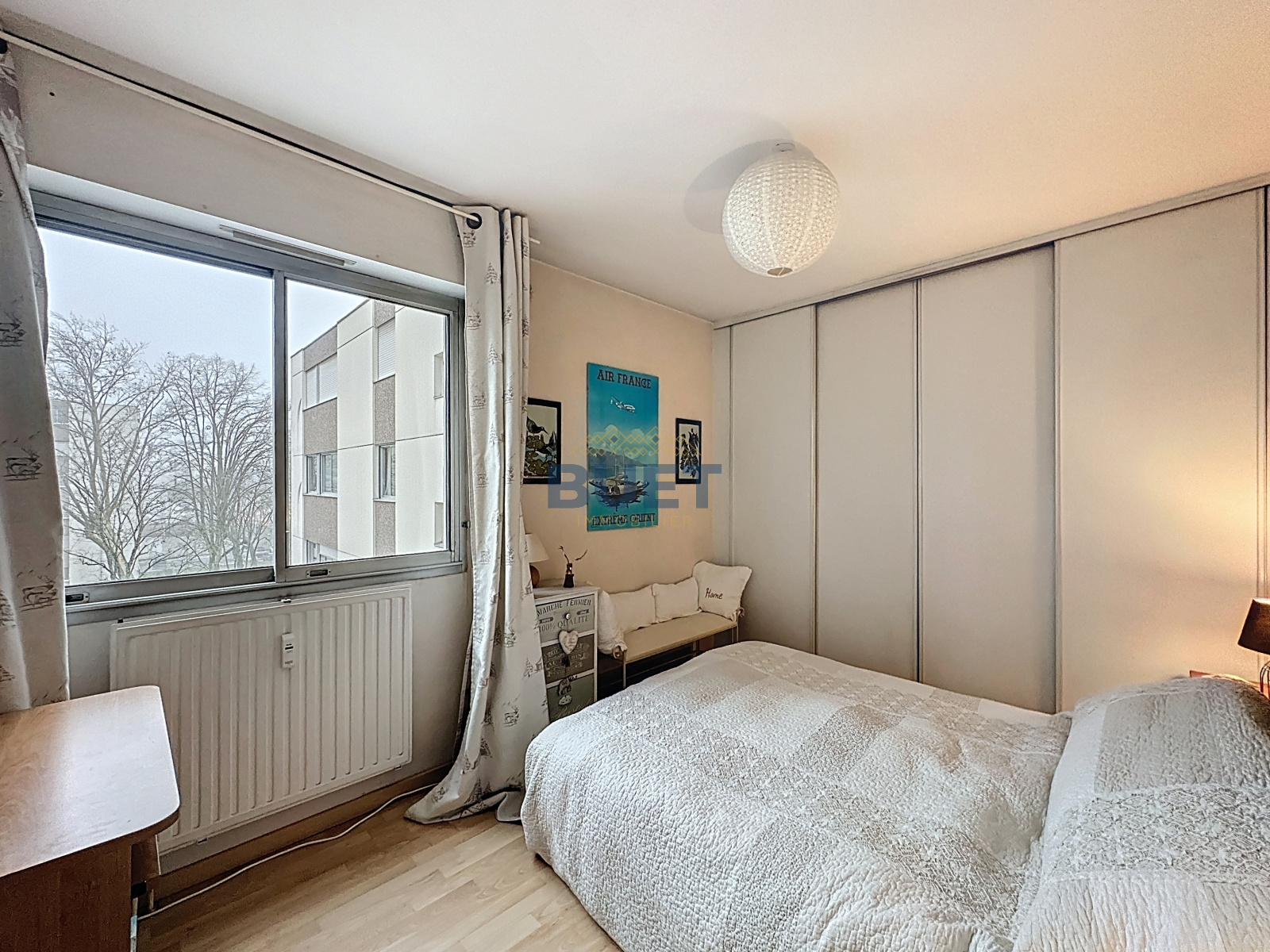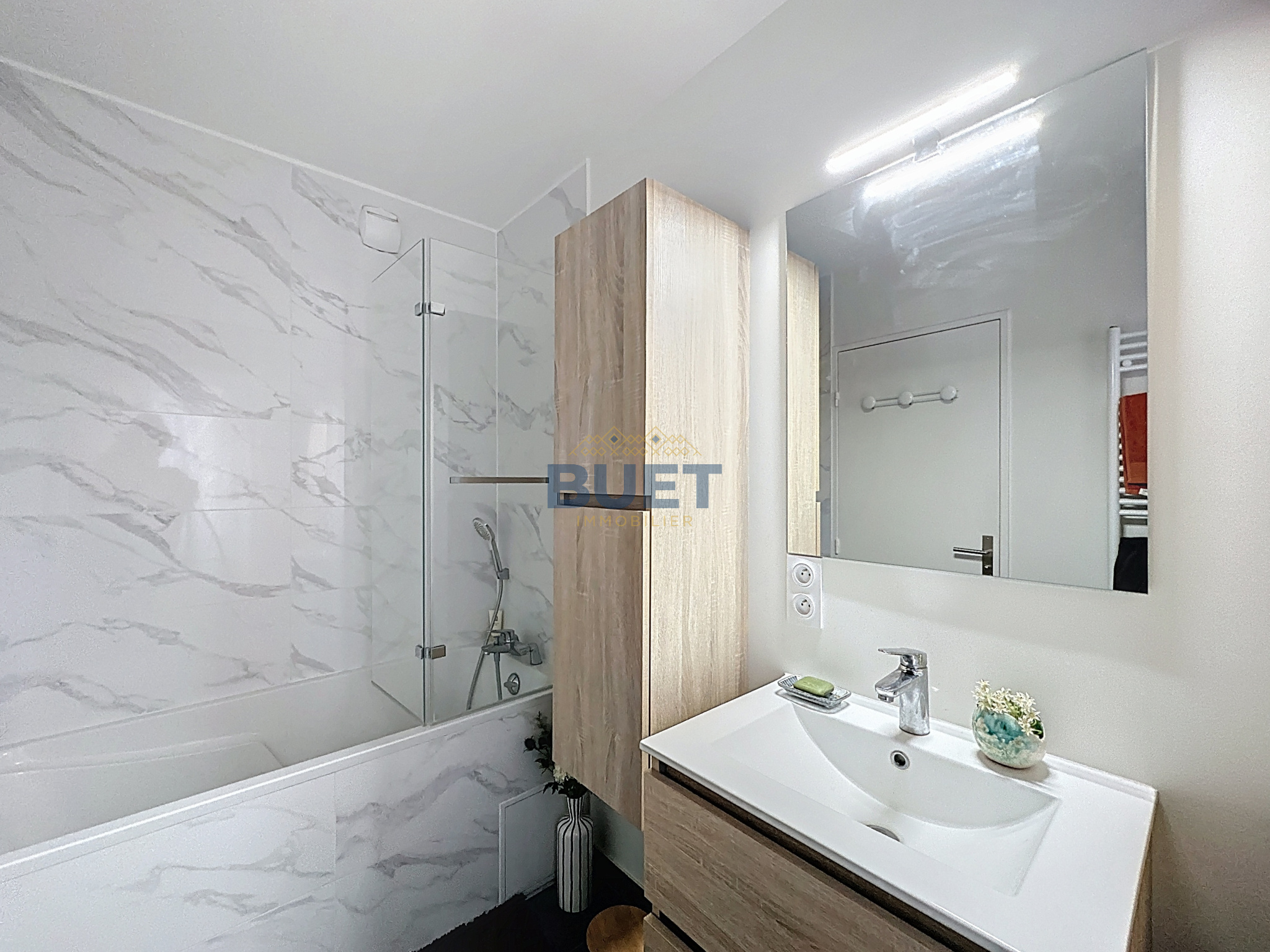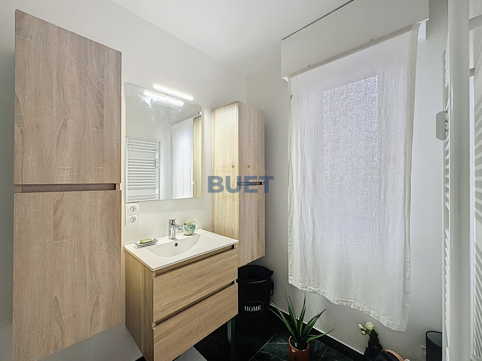 L’appartement offre une entrée avec placards, une cuisine aménagée et équipée, un séjour exposé OUEST avec vue dégagée, ainsi qu’une chambre avec rangements donnant sur une salle de bains rénovée. WC indépendants.