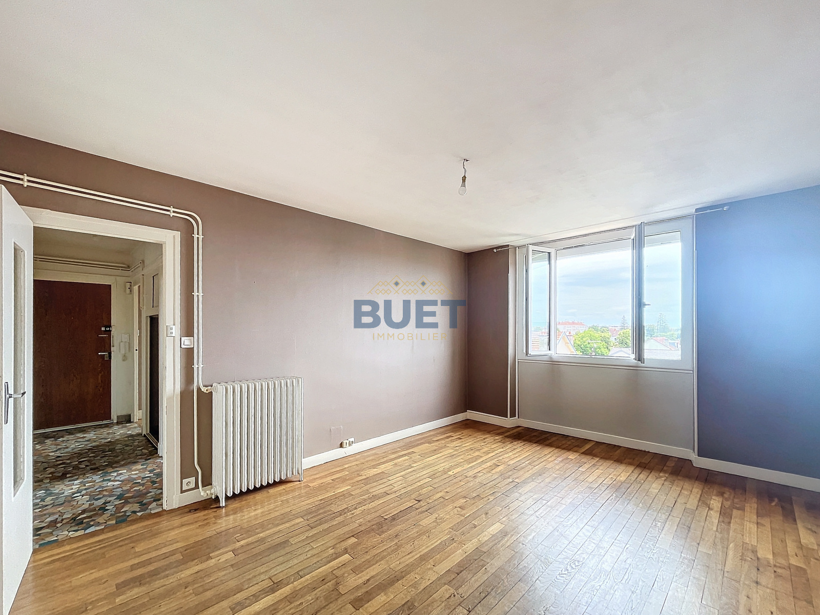 Dijon (21000)NOUVEAU ET EXCLUSIF - Appartement Type 4 d'une surface de 63.29 m² situé au 4ème et dernier étage sans ascenseur, comprenant : un hall d'entrée avec placard, deux chambres, un bureau, une salle de bains, un wc séparé, une cuisine indépendante, un séjour, un balcon, une cave. Fenêtres double vitrage PVC et volets roulants. Chauffage et eau chaude sanitaire individuel gaz. Prévoir Rafraîchissement.