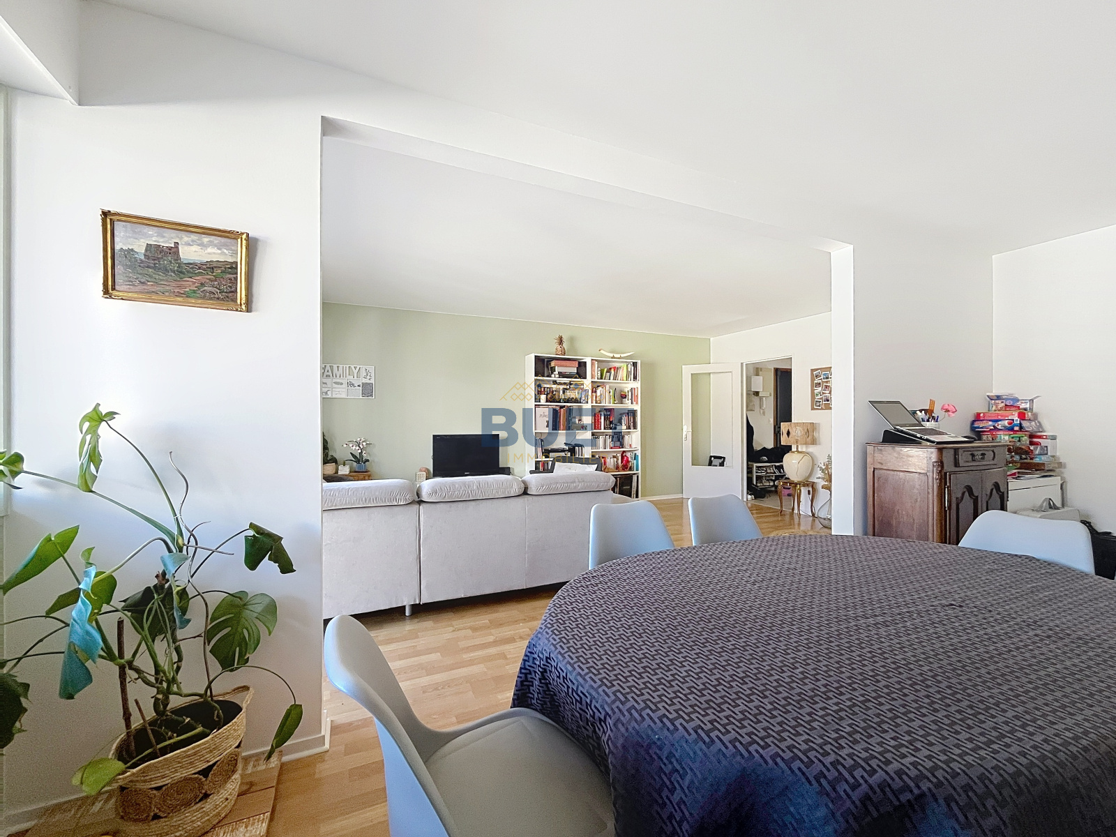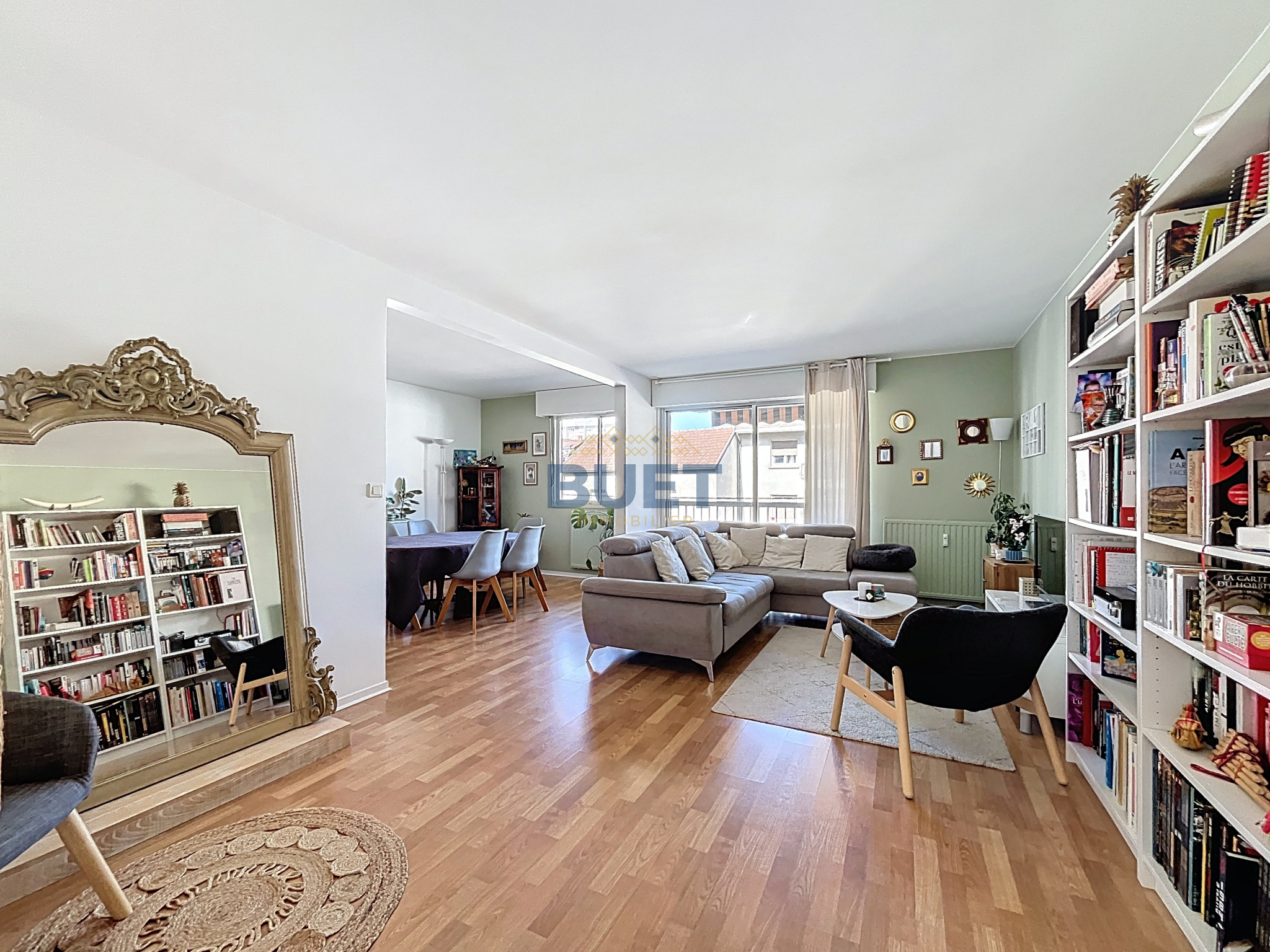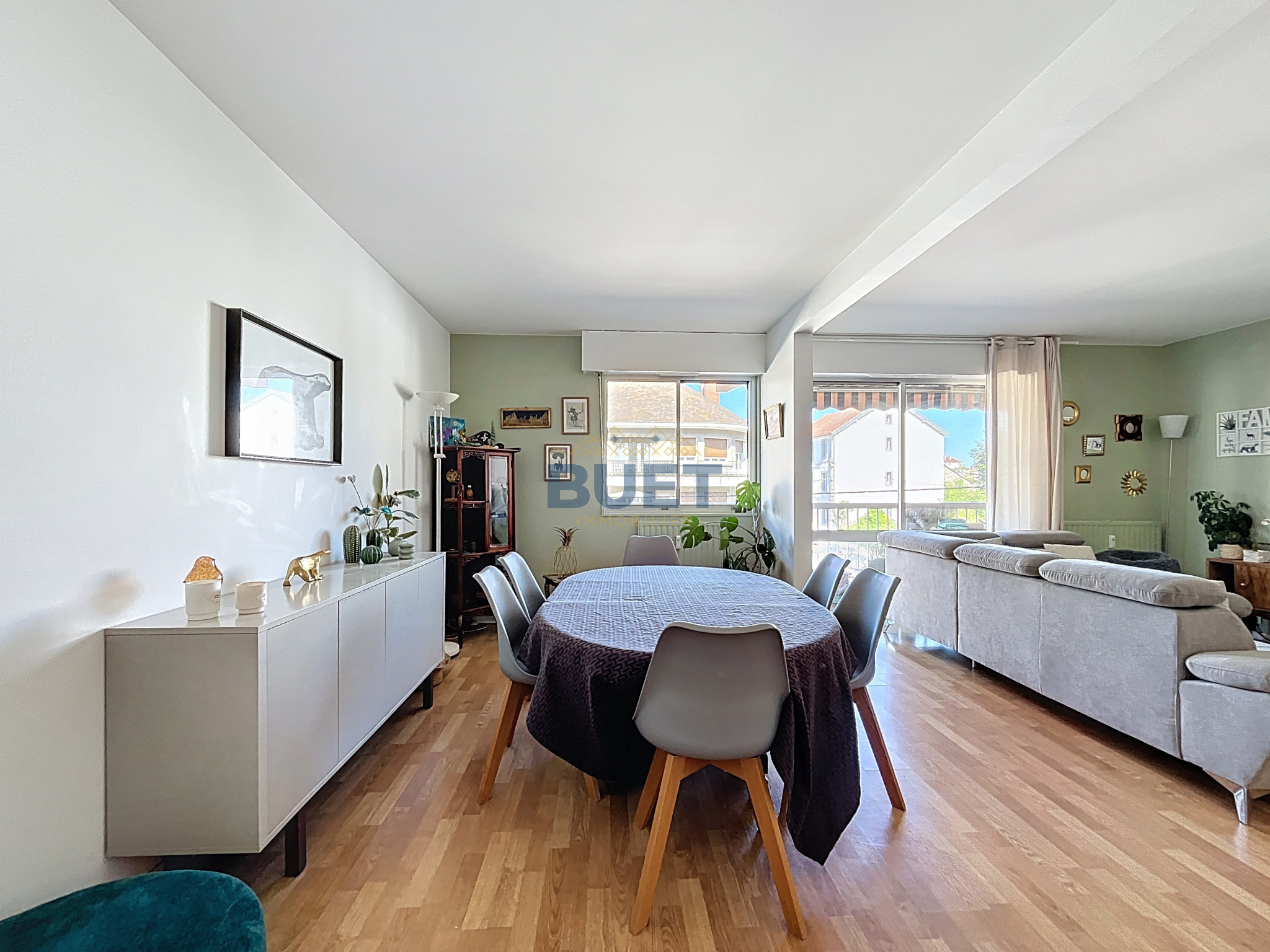 Appartement rénové avec goût, d'une surface de 100m², au 2ème étage avec ascenseur d'une copropriété bien tenue avec gardiens. Le bien est composé comme suit : une entrée, une cuisine aménagée et équipée, un séjour lumineux de 37,51m² avec balcon, un couloir avec placards desservant un cellier, trois chambres, une salle de bains et des WC indépendants.